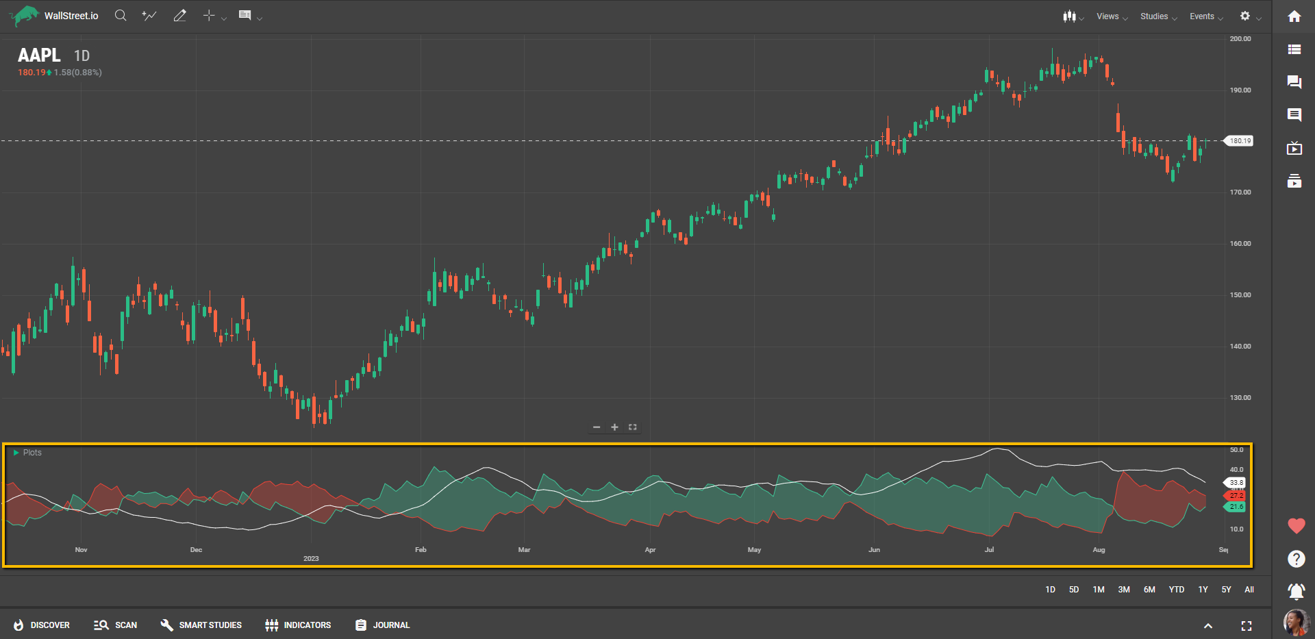 From the dropdown list of studies, select "ADX." Upon making this selection, a smaller dropdown menu will appear, allowing you to set the "Period.”