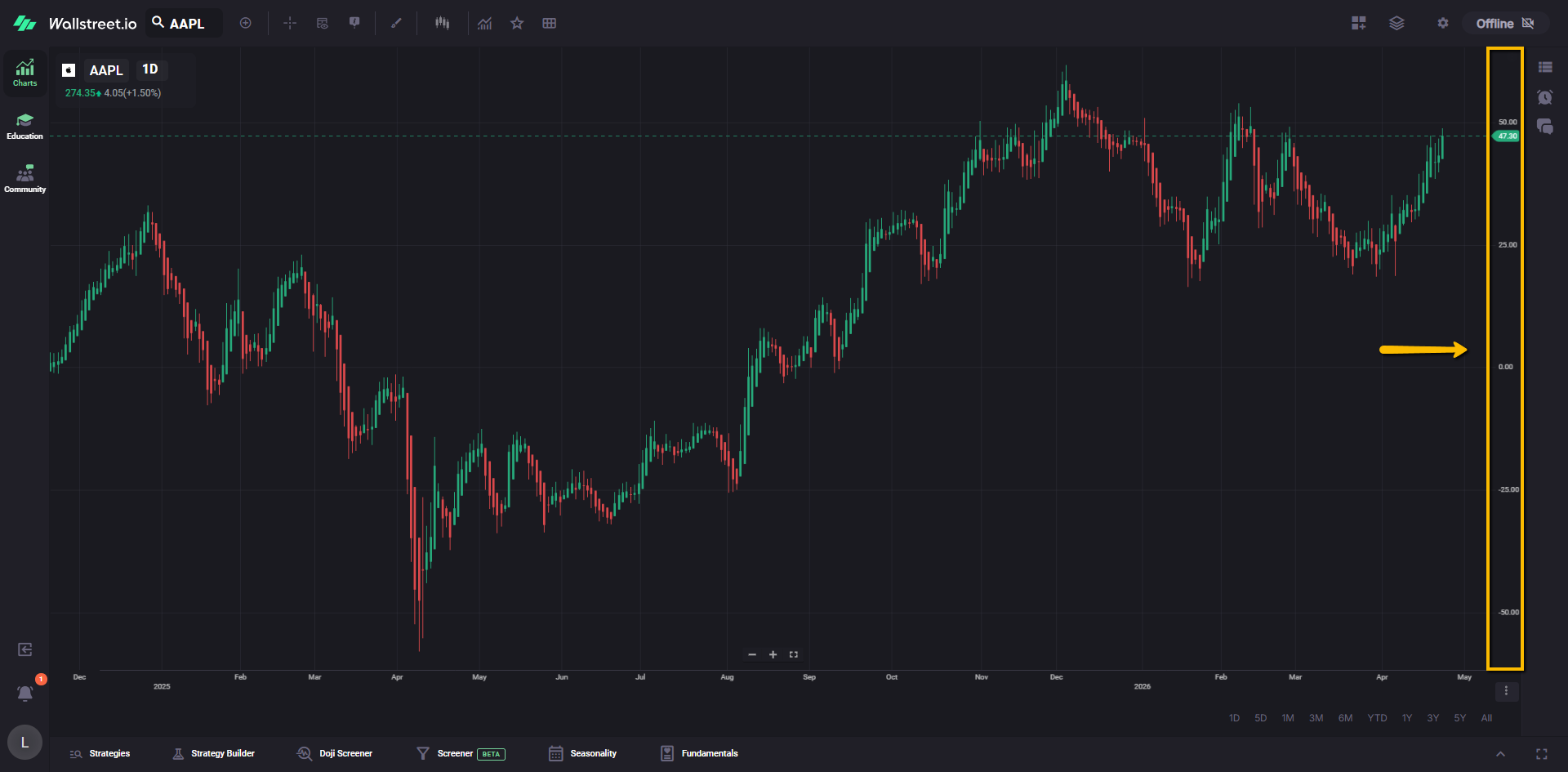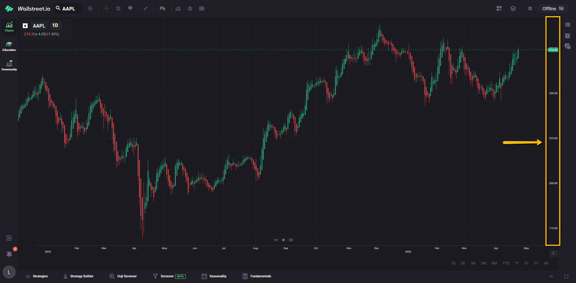 Your chart’s Y-axis is the price axis on the right side of the chart. By default, it shows price levels.