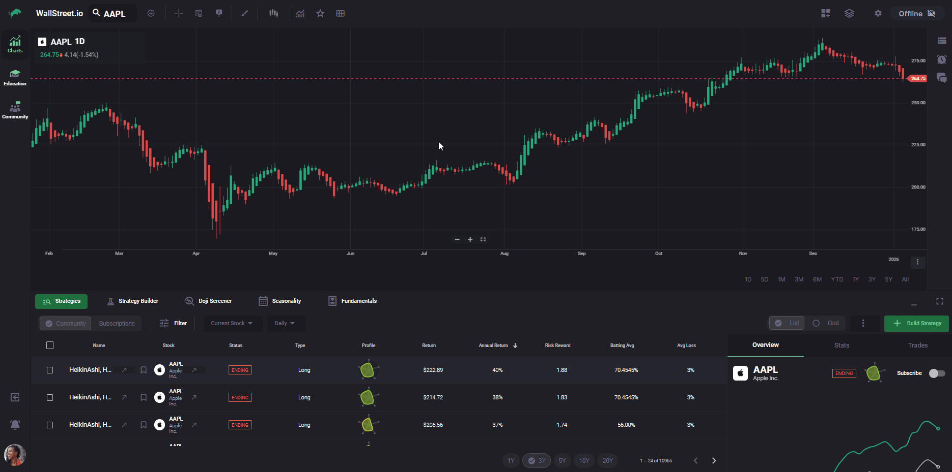 Click on a strategy row to select it. Start with a quick read of the overview.