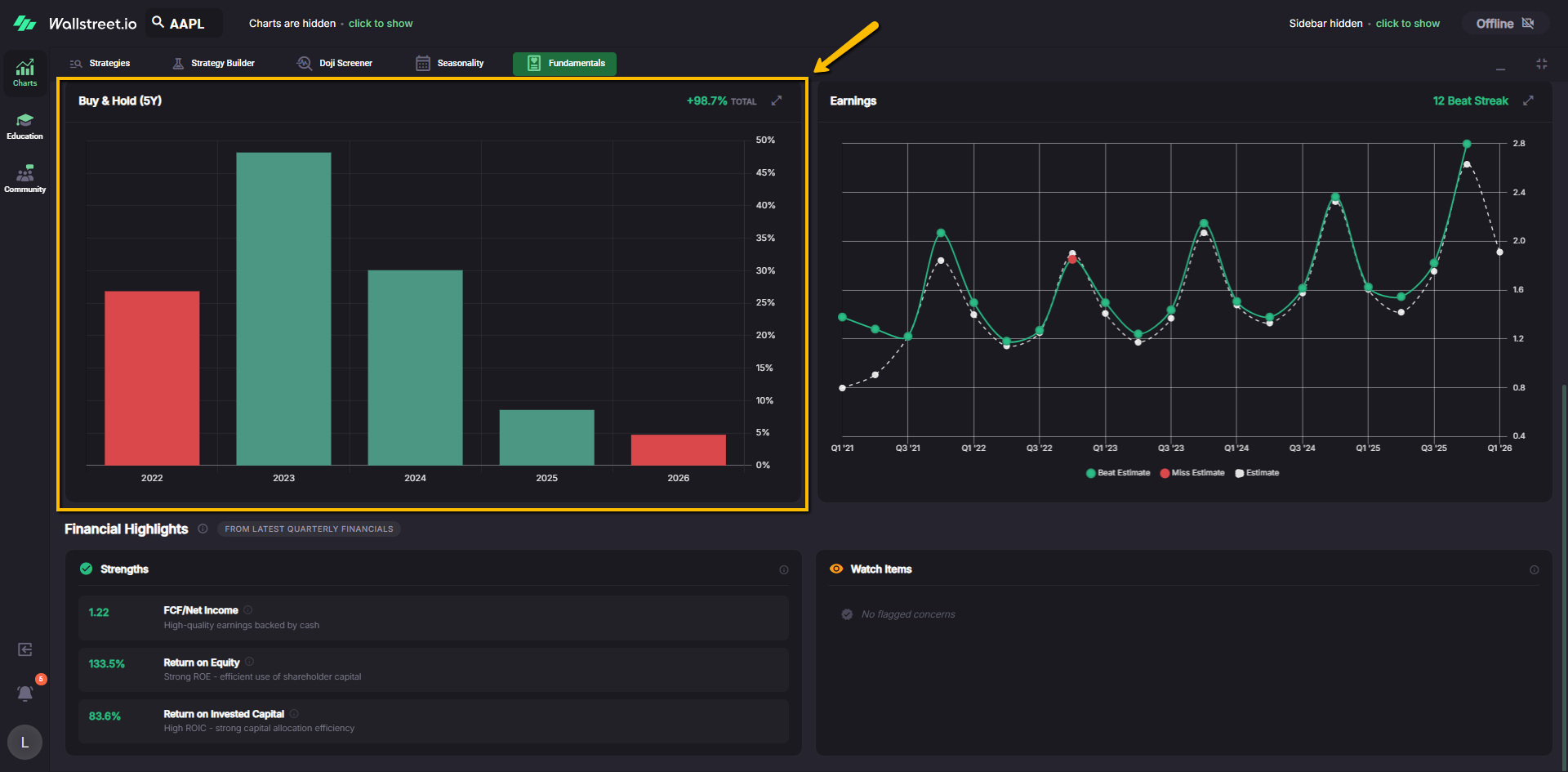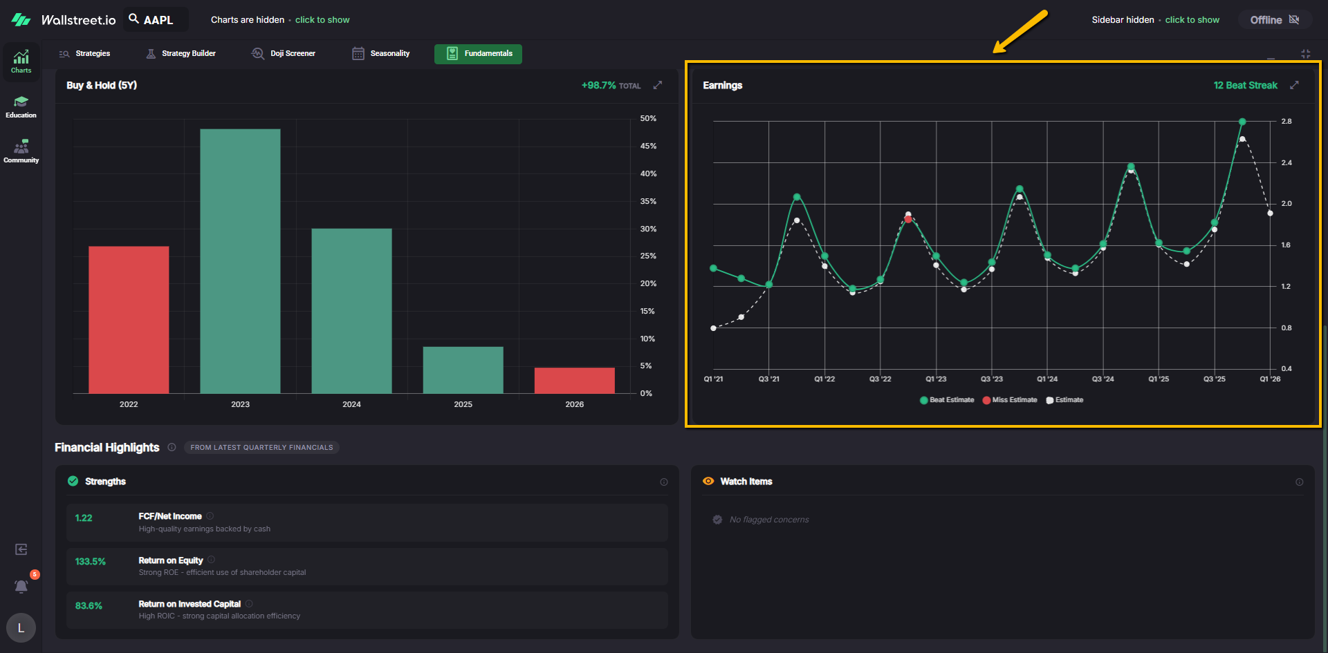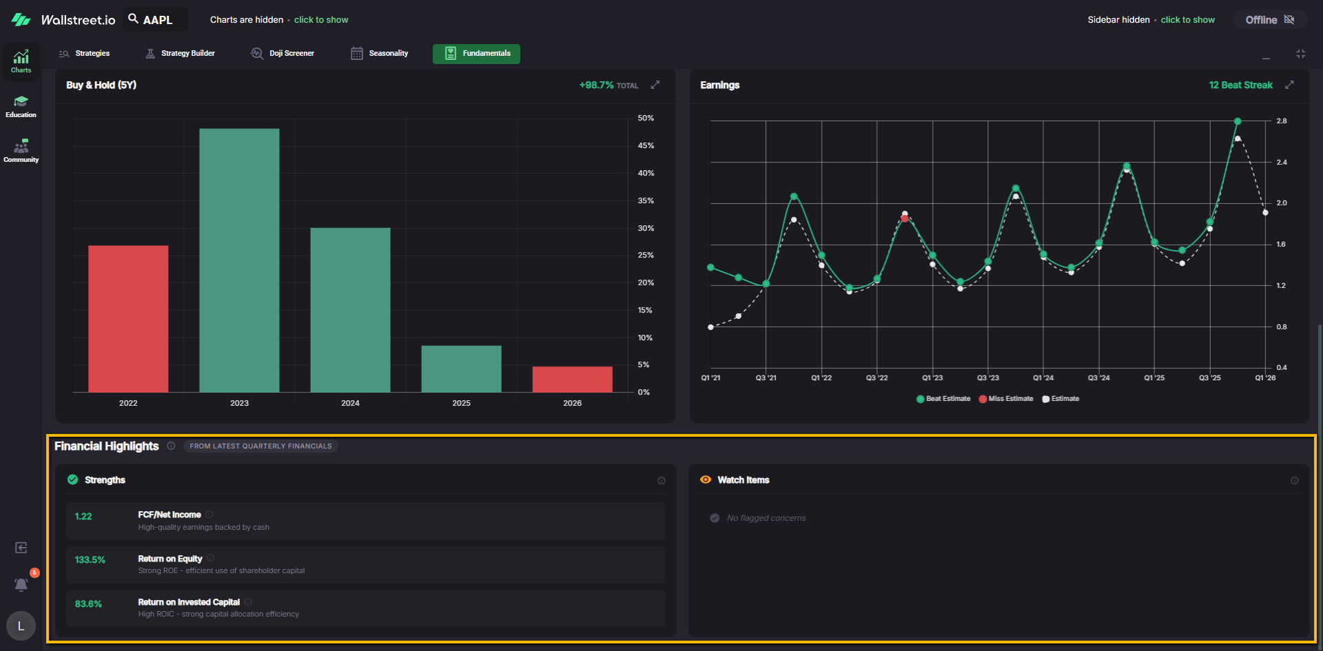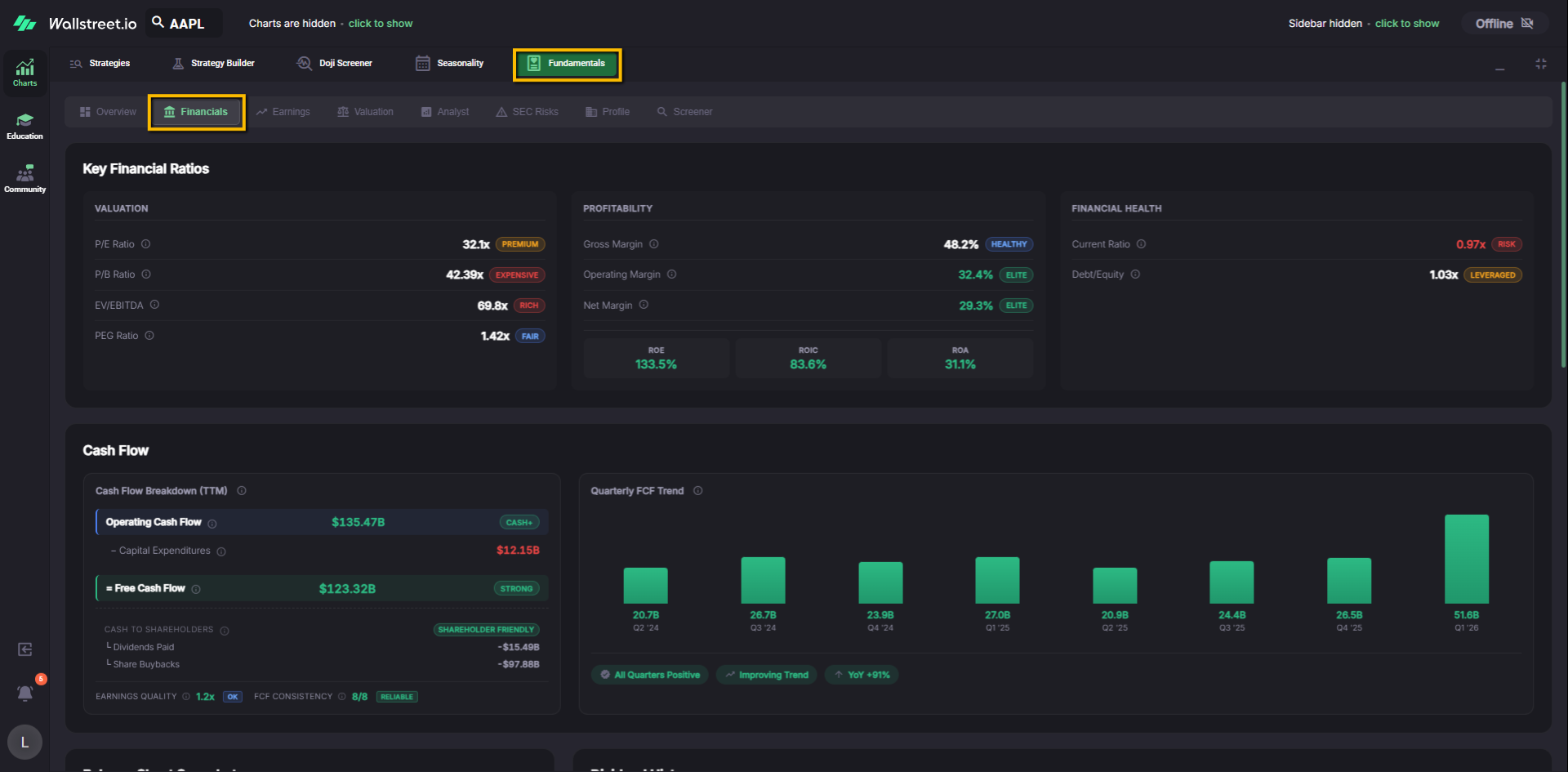 This matters because it keeps your trade ideas grounded in business reality, not just price action, so you can stack strategy signals on top of solid fundamentals instead of guessing. When you know what each chart and metric is telling you, it becomes easier to decide whether a symbol deserves more of your attention in the Strategy Builder or on your Watchlists.