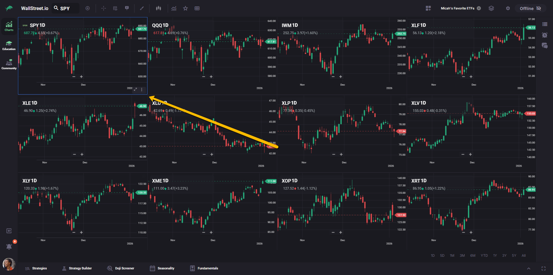Grids (Multi-Charts) let you view multiple charts at the same time, so you can compare symbols, timeframes, and strategy overlays side by side without constantly swapping your main chart.