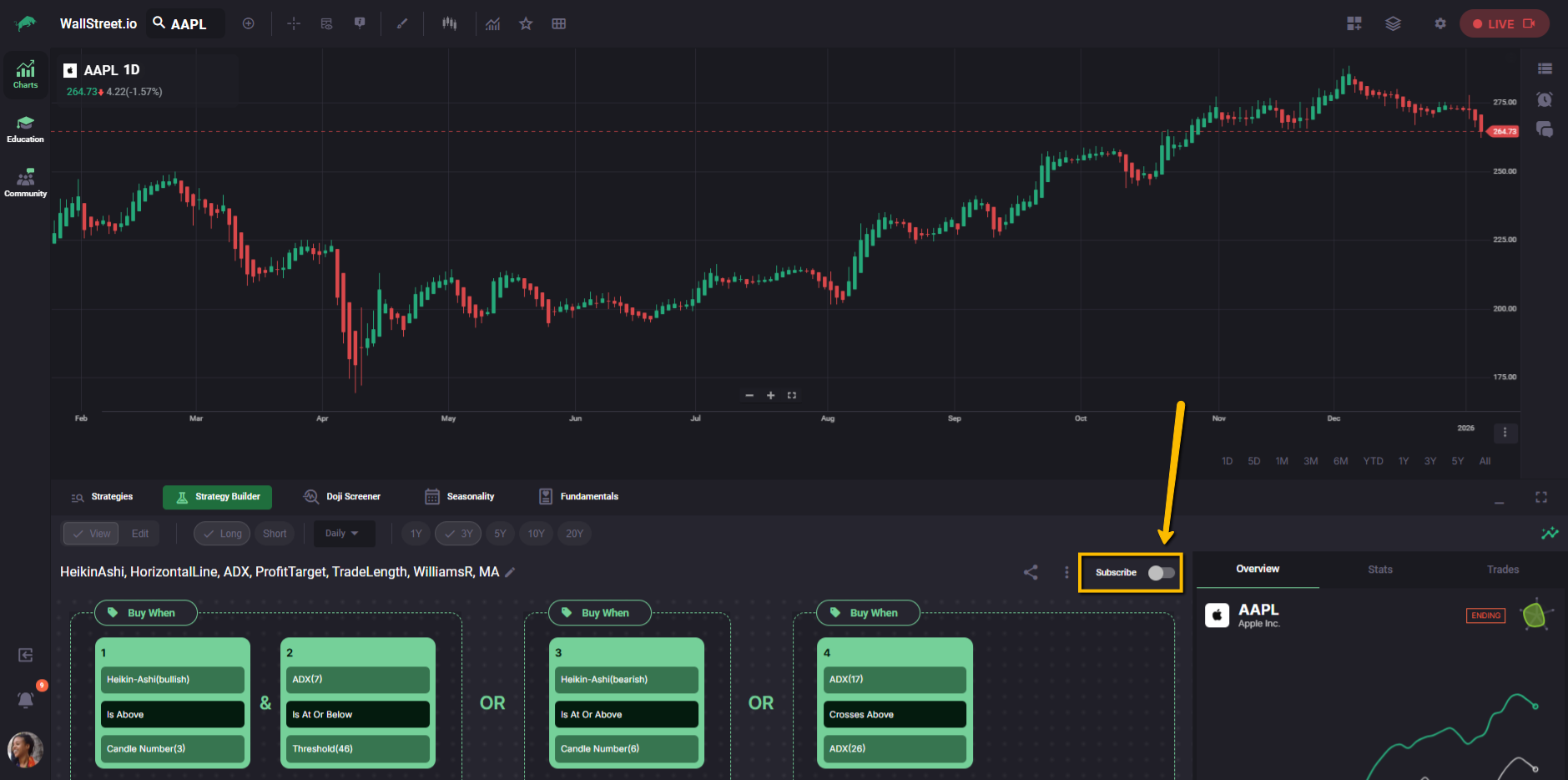 If you want your edited strategy to show up in your Subscriptions list and generate Strategy Alerts, make sure you subscribe to it after you’ve made your changes.