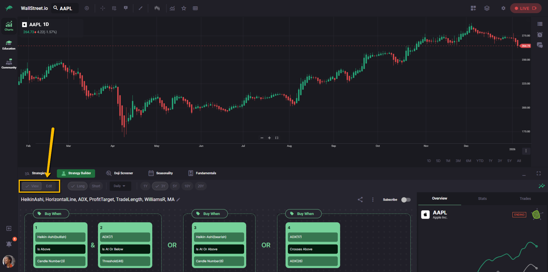 At the top of the Strategy Builder, use the View / Edit toggle to switch into Edit mode.