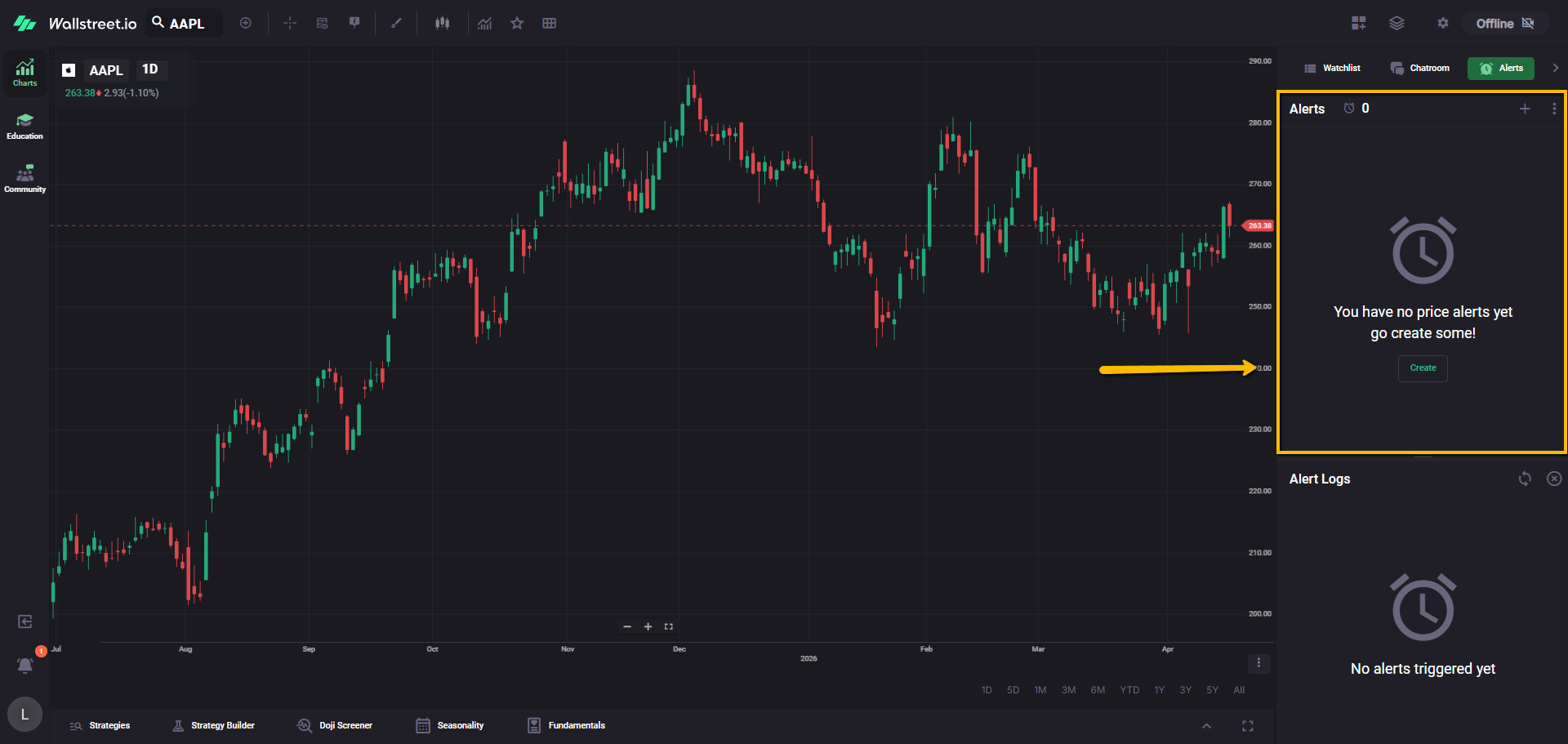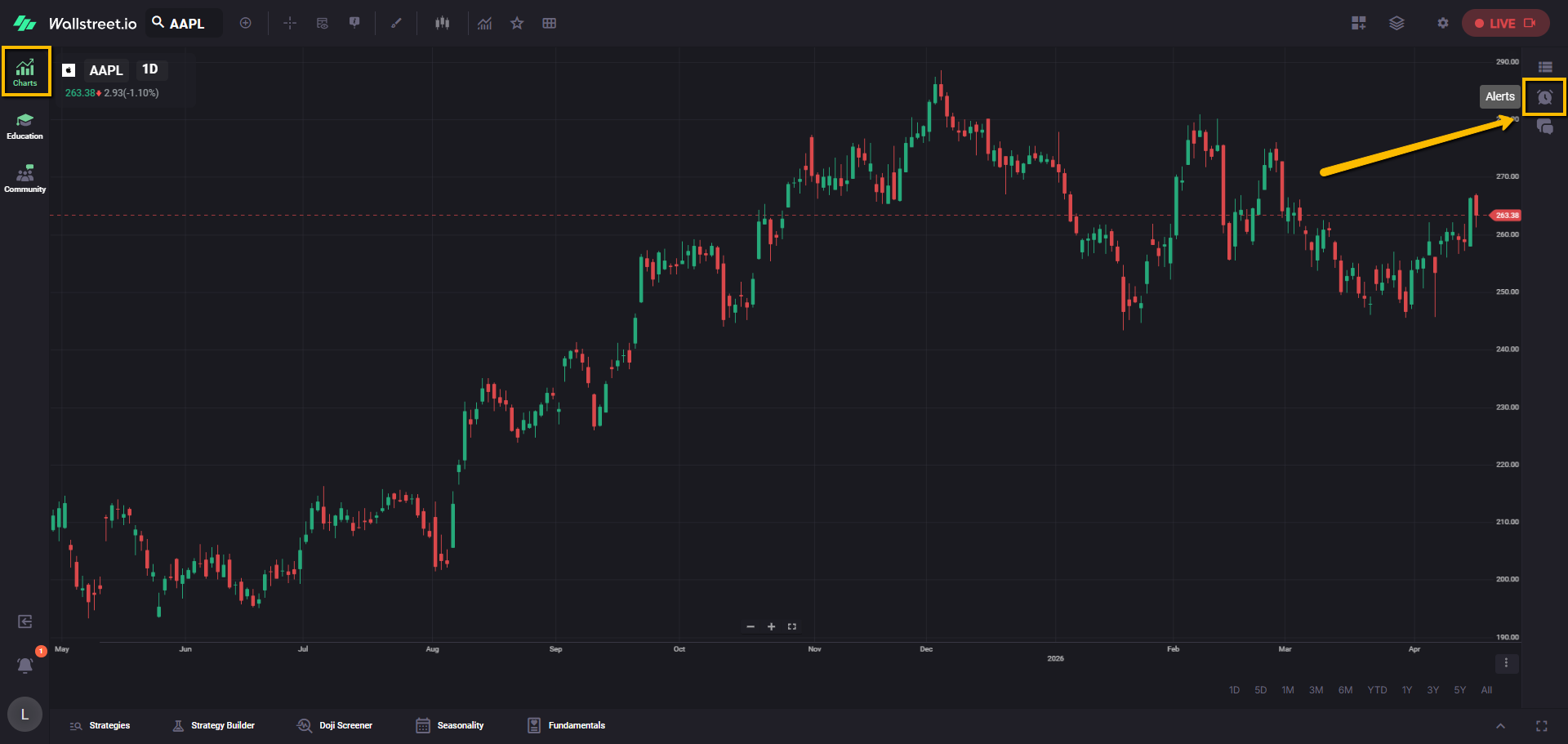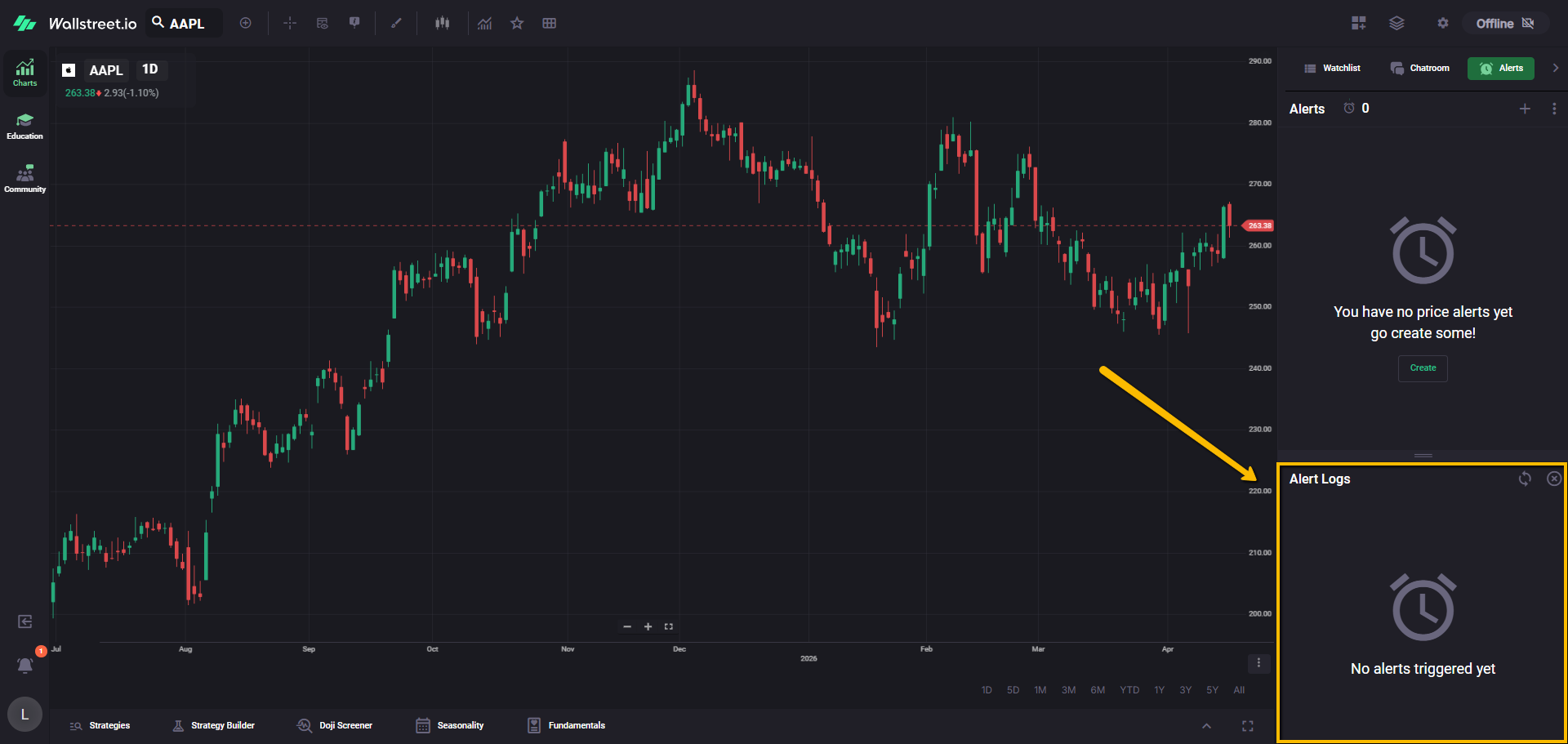 Alert visuals on the chart are enabled by default, but you can turn them off from the Chart Settings menu if you prefer a cleaner chart.