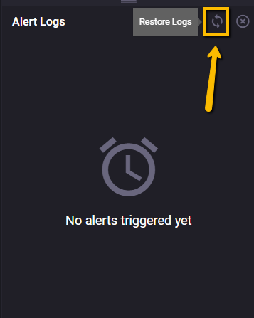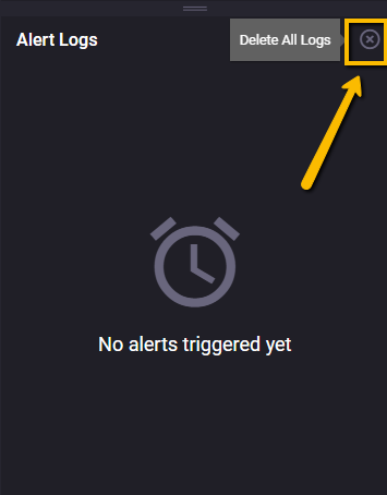 Alert Logs is the history area at the bottom of the panel. It shows items like deleted alerts, along with the symbol, the condition, and when the log entry was created.