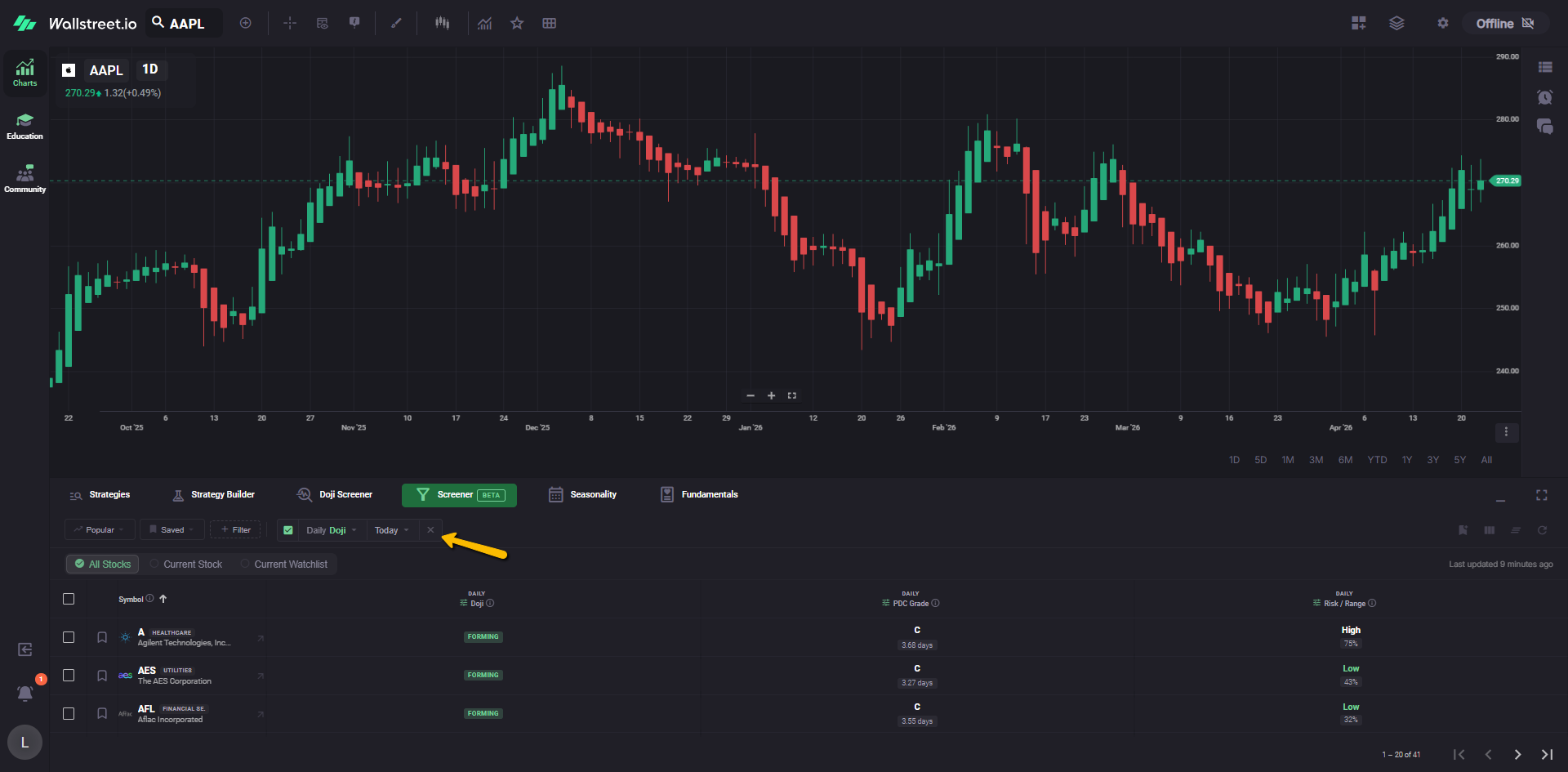 The current Beta Screener opens with the Doji filter already applied, so let’s take it as an example.